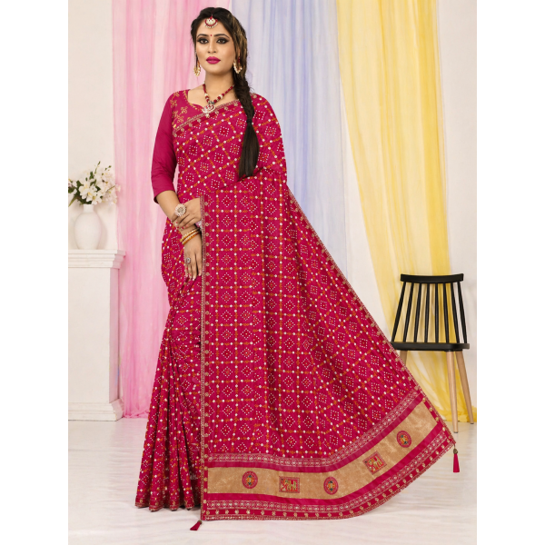 this stunning vibrant pink saree, beautifully designed to reflect elegance and tradition. Crafted from soft, lightweight fabric, this saree ensures a graceful drape and all-day comfort.