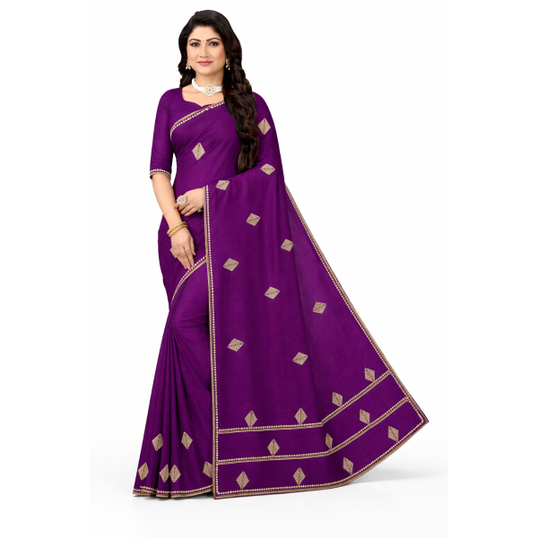 Elevate your ethnic wardrobe with this stunning deep purple saree that perfectly blends elegance with timeless charm. Crafted from a smooth, flowy fabric, this saree drapes beautifully to enhance your silhouette while ensuring all-day comfort.